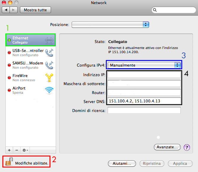 Istruzioni per la configurazione di un indirizzo IP in ambiente Mac-OS X